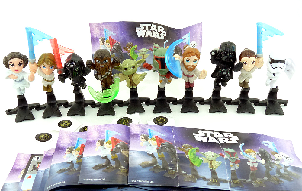 Dies sind die zehn neuen Star Wars Figuren aus dem Kinder Überraschungsei. Alle Figuren sind auf...