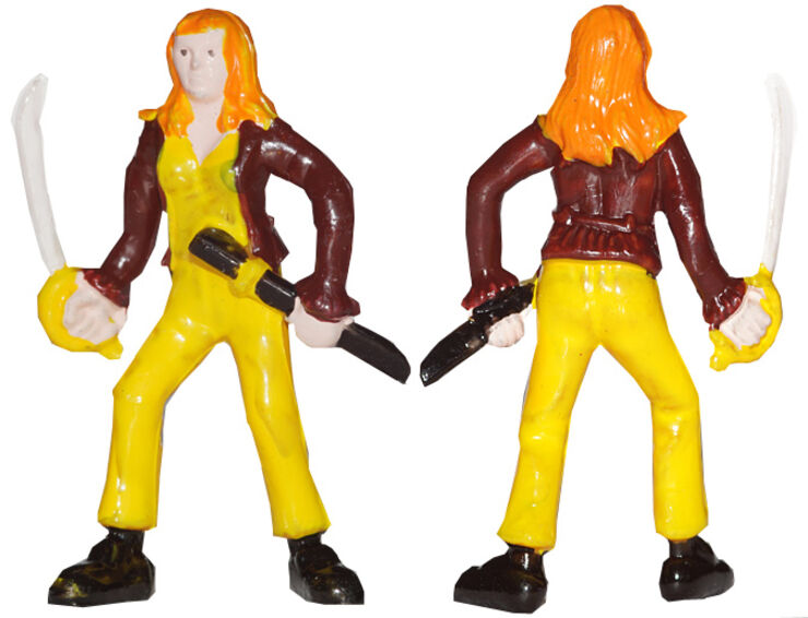 Der gelbe Rohling ist jedoch an mehreren Stellen noch problemlos zu erkennen. Von dieser neuen Variante existieren mehrere Exemplare. In weitaus überwiegender Anzahl ist bei diesen allerdings der Säbel abgebrochen. Eine genaue Überprüfung hat ergeben, dass es sich definitiv um den gleichen Rohling wie bei der bisher bekannten Piratin mit Säbel handelt. Mit Ausnahme der gelben Bemalung sind auch die verwendeten Farben und die Bemalungsreihenfolge identisch. Aufgefunden wurden die Figuren teilweise in kleinen Tütchen, die mit einer Klammer verschlossen waren, so wie auf dem folgenden Bild zu sehen.