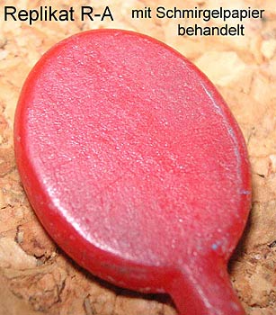 Wir zeigen daher auch ein Bild von so einem manipuliertem Replikat R-A mit Schmirgelpapier behandelt!