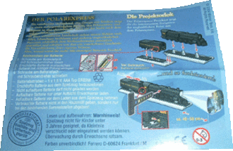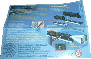 Aus dem Maxi Ei kommt diese Lok. Auf dem ersten Blick schaut die Lok nicht nur sehr gut aus, sondern ist noch mit der Funktion eines Projektors versehen. Der BPZ rechts zeigt, dass ein Streifen mit Bildern in der Lokmitte eingeschoben wird, die dann durch die Lok in Großformat projektiert werden.