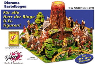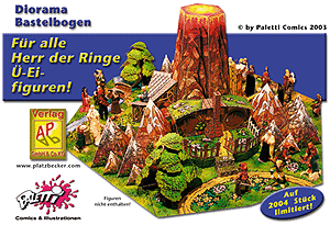 Dieser neue Bastelbogen hat einen Durchmesser von ca. 55 cm und eine Höhe von ca. 22cm. Die Auflage ist auf 2004 Stück limitiert. Gestaltet wurde der Bogen für alle Figuren von Herr der Ringe. Die Gestaltung und Grafik ist dem Paletti Duo sehr gelungen. [Der Bastelbogen ist für 12 Euro sofort kaufen auf eBay zu bekommen]