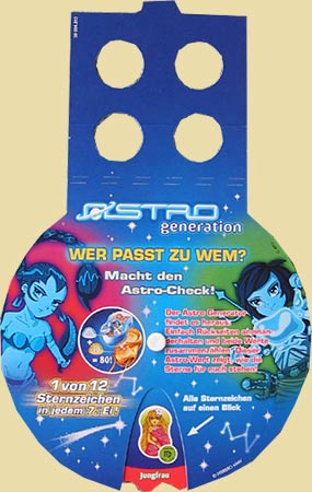 Der PAH der Astro Generation vermittelt nicht nur die wesentlichen Informationen zur neuen Serie, sondern zeigt alle 12 (Figuren) der Serie. Auf der Rückseite befindet sich eine Drehscheibe, die unten am PAH gedreht werden kann. Quelle: [Diese Auktion]