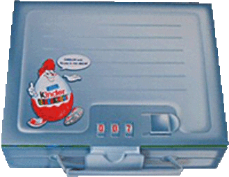 Im geschlossenen Zustand ist das Diorama ein Agentenkoffer. Der Eiermann darf natürlich auch nicht fehlen. In seiner Sprechblase steht "Entdecke, was Neues in mir steckt!" Als "Verschluss" ist ein dreistelliges Zahlenschloss abgebildet. Die richtige Nummer ist "007", ganz nach James Bond Manier. Bevor man das Diorama öffnet, kann noch der Deckel aufgemacht werden. Hier finden wir die typische Einleitung zur Serie und Werbung. Dieses ist das Zitat der kleinen Geschichte: "Eine von 10 Figuren in jedem 7. Ei! Alarmstufe Rot im Vorgarten! Der verrückte Oberschurke Dr. Mole will die Herrschaft über das Gartenland an sich reißen. Doch er hat seine Rechnung ohne Superagent Mike Mission gemacht. Der trommelt sofort alle Spezialisten seiner Spy-Teams zusammen, um Dr. Mole zu stoppen. " Nach dem Aufklappen erscheint jetzt der Hauptteil, wo 9 Figuren sofort einzusehen sind. Die zehnte Figur befindet sich noch mal extra verschlossen unten rechts. In der Mitte ist ein Brunnen, der durchs ganze Diorama geht. Auf dieser Vergrößerung sind die Figuren und andere Details schon zu erkennen. Unten rechts ist der Tresor wieder mit der Nummer 007, wo sich die zehnte Figur (Rick Radar) hinter verbirgt. Der Brunnen neben dem Tresor hat im unteren Bereich sinnbildlich böse Fische, wie z. B. einen Hai und in der Etage darüber mehr Aquarium Fische. Leider werden momentan die unverkäuflichen Mission-Maulwurf Dioramen von Ferrero gestoppt, aber vielleicht ist diese Auktion ja diesmal noch zu bekommen. [Hier der Link zur Auktion]