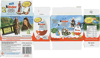 In Brasilien sollen in 2 Wochen die Herr der Ringe III Figuren an den Start gehen. Das Bild zeigt ein auseinander gefaltetes 2er Pack aus Brasilien, wo schon 5 Figuren abgebildet sind. Dies ist ein brasilianischer BPZ von Eomer. Besonders auffällig ist der Warnhinweis in gelb unter Eomer. Auf dem Bild zu sehen ist ein Aufkleber von Arwen. Von jeder Figur soll es so einen Aufkleber geben, wo sie allerdings zu bekommen sind oder beiliegen, ist noch ungewiss. [Alle Herr der Ringe Figuren und Artikel im Eierlei Shop] [Ausführliche Informationen zu Herr der Ringe]