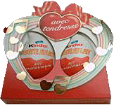 Zum Valentinstag gab es in Luxemburg dieses schöne 2er Pack zum Verschenken. Warum es zum Valentinstag Merendero Eier gab und keine Ü-Eier ist allerdings fraglich. Das Bild zeigt eine deutsche Merendero Testverpackung. In jedem Merendero Ei ist eine 3D Glitzerscheibe, sowie eine Geschichte "Die Abenteuer des Ulix" mit Bonuspunkten. Bei 3 Bonuspunkten kann man sich bei Ferrero ein Sammelheft für die Glitzerscheiben bestellen. [Mehr dazu in dieser Auktion] Dieses Huhn ist ein 4er Pack, welches zu Ostern in Luxemburg erschien. Das Huhn ist an den beiden Seite mit je zwei Merendero Eiern bestückt. Diese Oster einer Packs kommen ebenfalls aus Luxemburg. [Ausführliche Informationen zum Merendero Ei]