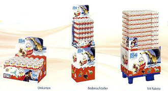 Dieser Bildausschnitt zeigt die Aufsteller von ICE AGE 4. Als erstes ist das Thekendisplay zu sehen, welches von Ferrero "Umkarton" genannt wird. Als zweites ein schmaler Aufsteller "Sonderaufsteller" und als drittes der Palettenaufsteller. Scrat scheint wie im Film eine große Rolle auf den Aufstellern zu spielen. Der genaue Auslieferungsstart vom Sommerei ist der 23. 04. 2012. Zum deutschen Kino Trailer von: [ICE AGE 4]. Danke an Hans-Dieter G