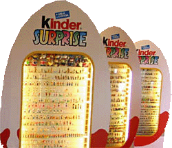 Zum Anlass des 30. Geburtstags des Ü-Ei\'s wird in Frankfurt vom 1. April bis zum 30. Mai ein Teil des Ü-Ei Museums ausgestellt. Die Ausstellung findet in Frankfurt, im Museum für Angewandte Kunst statt und trägt den Titel "30 Jahre Kinder Überraschung". Eröffnung ist am Donnerstag den 1. April um 20 Uhr. Auf der Homepage des Museums wird die Ausstellung mit folgenden Worten betitelt: "30 Jahre Überraschungsei - quengelnde Kinder, genervte Eltern, glückliche Sammler!" Was erwartet z. B. den Besucher? Das Bild zeigt eine Reihe großer Ü-Ei Setzkästen (Höhe über 2 m), dabei stammt dass Bild und die Informationen dazu von einem Besuch unsererseits in dem Museum in Dänemark. Diese Ü-Ei Setzkästen wurden laut unseren Information von Ferrero gesponsert, wobei die Figuren in diesen tollen Setzkästen aus einer privaten Sammlung stammen! Die Sammlung besteht aus alte Figuren, Metallfiguren, Steckfiguren, Euro Figuren, Fälschungen also so ziemlich alles an Figuren. Vielleicht wird auch der Planet der Super Spacys in Auktion zu sehen sein. Mehr Informationen werden wir Euch ab dem 1. April liefern können. In Dänemark hat man uns bereits vor 2 Jahren erzählt, dass dieses Ü-Ei Museum ein Wandermuseum werden soll. Lassen wir uns also überraschen wo und im welchen Umfang es als nächstes zu besuchen sein wird. Mehr Informationen zu Öffnungszeiten oder Anfahrtsweg findet Ihr auf der [Museums Homepage]