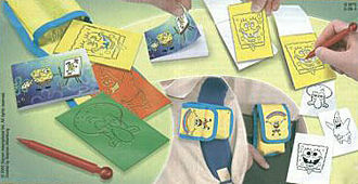 In der Weihnachtskugel wird es neben dem Steckspiel und der Spieluhr diese Schablonen geben. Das Bild zeigt uns den BPZ der Schablonen. Zu den Schablonen gibt es einen Stift und eine Tasche. Quelle: [Diese Auktion] Über die Spieluhr der haben wir zwar schon berichtet, aber wer noch den BPZ sehen möchte kann ihn in dieser [Auktion] sehen. Dieser BPZ verrät, dass es noch einen SpongeBob Inhalt geben wird. Es handelt sich um eine Rollmäppchen zum Anhängen. Quelle [Diese Auktion]
