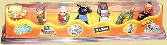 In Italien ist dieses Mini Diorama erschienen. Das Diorama soll die unterschiedliche Bandbreite der neuen Ü-Ei Inhalte auf einen Blick vorstellen. Dieses 3er Pack der Spongebob Schwammkopf kommt aus England Quelle [www. italoei. at] In Italien gab es dieses coole Kegel Spiel vom Monsterhotel. An der Größe sieht man schon, dass es aus einem Maxi Ei oder einer Weihnachtskugel stammt. Als Kegel gibt es 6 Kegel vom Monsterhotel, die mit einem spinnenähnlichen Ball umgekegelt werden müssen. Zu bekommen in dieser [eBay Auktion].