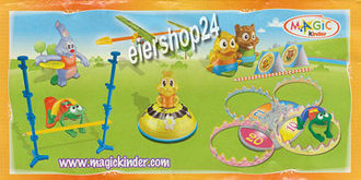 Von den Frühlingshüpfern gibt es eine 6-teilige Serie aus dem Maxi Ei. Der Beipackzettel zeigt die Inhalte. Das Maxi Ei besteht aus 100g Ü-Ei Schokolade. [Zu bekommen in dieser eBay Auktion]