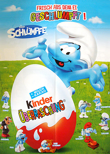 Frisch aus dem Ei geschlumpft ist dieses Poster nicht, dafür ist es mit dem Maß 80 x 52 cm zu groß :-) Das erste Poster zeigt in voller Größe einen Schlumpf und darunter die 8 Serienfiguren. Das zweite Poster besteht irgendwie aus 4 Motiven zur aktuellen Serie. Oben ist eine Hälfte mit den 8 Serienfiguren samt Beschreibung. Die andere Hälfte hat noch mal 3 Einzelbilder. So kann das Poster individuell zugeschnitten und geknickt werden. Danke für die Bilder an Christian H. Alle Figuren und auch Sätze der Serie findet Ihr im [Eierlei- Shop]