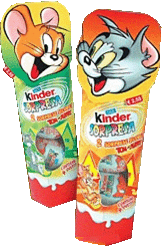 Das Tom und Jerry 4er Pack gibt es in zwei Layouts. Der Preis des 4er Pack ist auf dem kleinen roten Schild zu erkennen (2,55 Euro)! Unter Kinder Sorpresa steht eine 2 was vermuten lässt, dass zwei von den vier Inhalten mit Tom und Jerry Figuren bestückt sein könnten, was somit den hohen Preis erklären würde. Die 6er Packs gibt es in drei unterschiedlichen Farben und Motiven. Das 6er Pack besteht aus Kunststoff. Auf dem 6er Pack ist eine 3 zu sehen (contiene 6 ovetti 3 sorprese sicure), welche garantiert das 3 Tom und Jerry Figuren enthalten sind. Der Preis des 6er Packs ist 3,90 Euro. In den italienischen Maxi Eiern sind Looney Tunnes Inhalte, wie z. B. die bekannten Stofffiguren und es wird versprochen, dass in jedem dritten Maxi Ü-Ei ein Inhalt von Looney Tunnes ist. [Mehr Informationen dazu unter www. ferrero. it/ferrero. htm] [Mehr zum Thema Tom und Jerry aus dem Ü-Ei] [Live Suche auf eBay nach Tom & Jerry starten] [Tom und Jerry Sätze im Eierlei Shop]