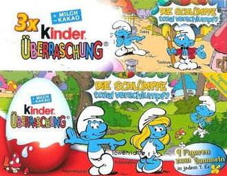 Mit diesem 3er Pack wird es jetzt auch in Österreich schlumpfig. Die erwartete Garantie, dass eine Figur pro 3er Pack enthalten ist, gibt es nicht. Unten links steht der Hinweis, dass es 9 Figuren zum Sammeln gibt. Äh und was ist mit dem Geburtstagsschlumpf? Die Monsters & Pirates versuchen die Weltherrschaft zu übernehmen und sind jetzt in Russland gesichtet worden. In Slowenien gibt es diese drei Weihnachtseier. Die Ü-Eier können an den Tannenbaum gehängt werden.