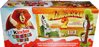 In der Schweiz gibt es dieses 3er Pack von MADAGASCAR 2 Figuren. Garantiert wird eine Figur pro 3er Pack. Des Weiteren gibt es noch ein 6er Pack und 4er Pack im Madagascar Look. Danke für das Bild an Andreas H. Auf einer der vielen griechischen Inseln ist dieses 6er Pack gestrandet. Enthalten sind zwei 3er Packs und eine Video CD. 3 Figuren werden pro 6er Pack garantiert. In Polen gibt es dieses Schatzinsel. Genau genommen sind es zwei Monsters & Pirates Figuren aus Ü-Ei Schokolade. An der dritten Stelle befinden sich Memory Karten. Es soll sich hierbei um eine Testversion handeln.