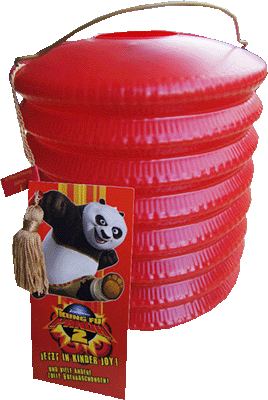 Passend zum Film ist das Diorama von Kung Fu Panda 2 ein roter Lampion. Das Diorama kann aufgehängt werden und durch das Ziehen an der Kordel geht ein Licht an. Das untere Bild zeigt das Dioram geöffnet. Dort sind alle 8 Figuren der Serie zu sehen. Wieder einmal eine passende und neue Idee von Ferrero. Immer mehr Kung Fu Panda 2 Dioramen sind auf eBay zu finden. [Live Suche auf ebay nach dem Diorama starten]