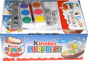 Aus den Niederlanden stammt die gute Osteridee, zwei 3er Packs ein Oster Malset beizufügen! Das Malset ist laut Aufschrift gratis und besteht aus einem Pinsel, 6 Tuschfarben und einer Schablone! Na ja, wenn damit mal nicht noch jemand die Ü-Eier anmalt ;-) [Link zu dieser Auktion auf eBay]