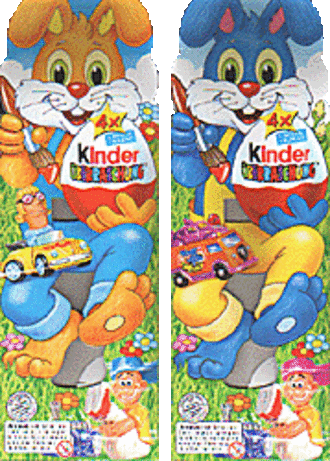 Zu Ostern präsentiert Ferrero zwei 4er Ü-Eier Packs. Die Verpackung gibt es in zwei unterschiedlichen Farben, wobei das Motiv gleich bleibt! Leider sind keine besonderen Harnplastikfiguren in den 4er Packs aber die Bilder zeigen einen Bus, der bis jetzt noch nicht in den Ü-Eiern war, so dass man davon ausgehen kann, dass uns zum Teil neue Zusammenbauinhalte erwarten.