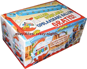 "So was gab es noch nie!" Auf dem Bild zu sehen sind zwei 3er Packs der Motocoyoten, die mit dünnen Folien umringt sind. Unter der Folie befindet sich ein hellblauer länglicher Ballon, der auch auf der Verpackung zu sehen ist. Der Ballon soll den Kaufanreiz erhöhen, darum steht auch auf der Verpackung GRATIS! Einziger Nachteil ist, dass es sie bis jetzt nur in Belgien gibt! [Kaufmöglichkeit bietet diese eBay Auktion]