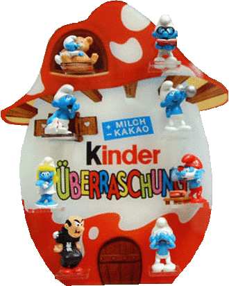 Am 27. 12. 11 ist der offizielle Auslieferungsstart der neuen Schlumpf Serie in Deutschland. Auf dem Bild zu sehen ist das Diorama. Dabei handelt es sich um einen Setzkasten. Die 8 Figuren der Serie stehen auf einem transparenten Acryl Plättchen, welches in der Vorderansicht kaum zu erkennen sein soll. Der Hintergrund des Dioramas ist eine Kreuzung vom Ü-Ei und Schlumpfhaus. Quelle: [ Diese eBay Auktion]