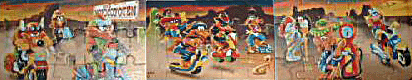 Genau wie bei den Ötzis besteht das Superpuzzle der Motocoyoten aus drei Ecken. Bei den Coyoten sind die Ecken nur nicht hochkant aneinadergelegt, sondern wie das Bild zeigt in Längsrichtung. Die drei Puzzleecken zeigen alle 10 Figuren. Der BPZ zum Puzzle ist wie immer im gewohnten schmalen Format! [Live Suche nach den Motocyototen auf eBay. de starten]
