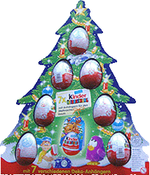Bei diesem schönen Tannenbaum handelt es sich um eine sogenannte Testverpackung, die nur in wenigen Läden erschienen ist! Die Verpackung beinhaltet 7 Ü-Eier, die aber nicht mit besonderen Ü-Ei Inhalten gefüllt sind. Die Verpackung stellt dar, wie 7 Ü-Eier an einem Tannenbaum hängen und so sollen auch die Ü-Eier an den Tannenbaum gehängt werden. In der Verpackung befinden sich noch 7 Weihnachtsbaum Anhänger aus Pappe, so wie vorne auf dem Cover einer mit Rentier abgebildet ist! Fazit: Schade, dass es diese Sonderverpackung nur als Testverpackung gab!