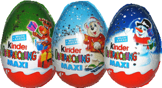 Dies sind drei neu designte Maxi Eier. Links geht es los mit einem Rentier welches Geschenke verteilt mit grünem Himmel. In der Mitte ist ein Ski laufender Eisbär mit hellblauem Himmel und ganz rechts ist ein Schneemann mit Geschenken und dunkelblauem Himmel. Livesuche auf eBay nach Maxi Eier Inhalten 2011 [Suche starten]