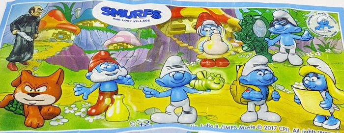 Dies ist die Vorderseite eines EU Beipackzettels von den Schlümpfen 2017. Links oben ist die allseits bekannte Figur Gargamel, den wir schon 2013 im Überraschungsei hatten. Bei den deutschen Sätzen fehlt fast immer Gargamel und auf eBay werden Preise -nur für den neuen Gargamel - um die 20 Euro erreicht. Diese Tatsachen lassen viel Spielraum zu Spekulationen.
