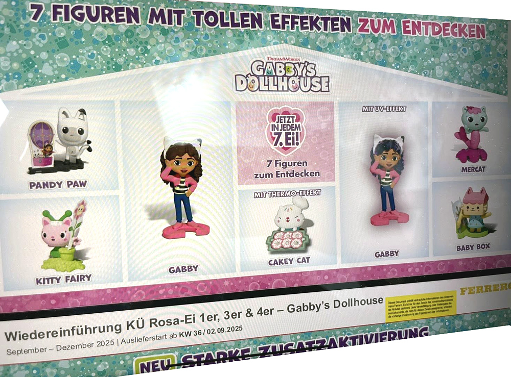 Die Serie Gabby's Dollhouse wird dann im September bis Dezember im deutschen rosa Ü-Ei stecken. Auslieferungsstart ist der 02.09.25.