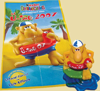 Es gibt eine neue Figur bzw. abgeänderte Version von Volker Vorsicht. Die Figur unterscheidet sicht dadurch, dass der Rettungsring komplett rot ist und mit dem Schriftzug "Ü-Tag 07" versehen wurde. Leider ist das Bildmaterial nicht sehr gut, aber wir bekommen gewiss noch bessere Bilder. Das Bild rechts zeigt den extra BPZ von Volker Vorsicht. Der BPZ ist im Hochformat wie es bei Ronnie Riesenei der Fall ist. Auf dem BPZ steht oben "Ü-Tag 2007". Diese besondere Figur hängt wahrscheinlich mit dem Ü-Ei Gewinnspiel auf Toggo. de zusammen, wir berichteten kürzlich. Wir gehen jetzt davon aus, dass das Ü-Ei in der Ente aus dem Gewinnspiel die Sonderfigur enthält. Eine der Sonderfiguren wurde erst in unserem Forum gezeigt, danach wurde innerhalb kürzester Zeit in einer eBay Auktion mit der Figur die 100 Euro Grenze überschritten [Link zu der ersten eBay Auktion von Volker Vorsicht]. Leider ist noch nicht bekannt wieviele es von diesen Sonderfiguren geben wird. Mehr zu dieser äußererst spannenden Sonderfigur findet ihr in diesem Eierlei [Foren Beitrag].