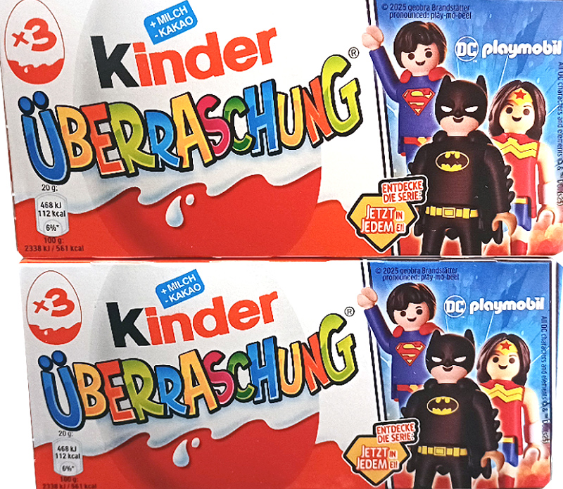 Das Bild zeigt uns dreier Packungen aus Österreich. Superman, Batman und Wonder Woman sind auf dem Cover zu sehen.