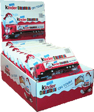 Da wir bei unserem ersten Bericht über den Ü-Ei Truck noch keine konkreten Daten hatten, hier noch ein ausführlicher Zusatzbericht! Links zu sehen ist ein Aufsteller gefüllt mit 24 Trucks. Der Preis pro Truck beträgt 2,49 Euro. Zu den Ü-Ei Trucks wurden auch noch Giotto Trucks ausgeliefert. Die meisten Filialen haben nur einen Karton Ü-Ei Trucks bekommen. Es gab oder gibt die Trucks bei vielen "Norma" Filialen und anscheinend auch nur da! Rechts auf dem Bild zu sehen ist das Werbeposter zum Truck (Größe A4). Eins gab es zu jedem 24er Aufsteller dazu! Ein Bild vom Giotto Truck findest Du hier [Auktionen vom Giotto Truck]! Wer den Truck kaufen möchte, aber keine Möglichkeit hat ihn im Laden für 2,49 Euro zu bekommen, dem können wir empfehlen, diese Live Suche nach dem Werbetruck auf eBay zu starten, dort sind die Preis schon ordentlich gefallen. [Live Such nach Werbetruck starten] Hier noch der letzte Link zum Werbeposter des Trucks. [Zur Poster Auktion]