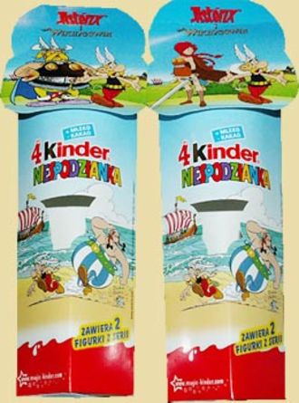 In Italien gibt es diese 3 unterschiedlichen 6er Packs zur Serie "Justice League". In jedem Pack werden 2 Figuren garantiert. Quelle: [Diese eBay Auktion] Das Bild zeigt ein 3er Pack von Asterix und die Wikinger aus der Schweiz. Es wird für eine Figur pro Pack garantiert. Quelle: [Diese eBay Auktion] Asterix und die Wikinger ist die Frühjahrsserie in Ungarn. Quelle: [csabikinder. shp. hu]
