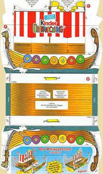 In dem 6er Pack von Asterix und die Wikinger befindet sich dieser Bastelbogen. Nach dem Zusammenbasteln kommt ein doch vorzeigbares Wikinger Schiff heraus. Die Figuren können in der Galeere untergebracht werden. Ist zwar nicht viel Platz, aber es passt.