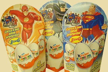 Aus Polen kommen diese beiden 4er Packs von Asterix und die Wikinger. Wir gehen davon aus, dass pro 4er Pack 2 Figuren garantiert werden, da unten rechts auf der Verpackung ". . 2 Figurski. . " steht. In der Slowakei sind interessante Promo-Artikel erschienen. Der Wikingerhelm aus Pappe ist besonders gut gelungen. Quelle: [www. kizi. sk] In den italienischen Maxi Eiern gibt es zu Ostern die Baby Looney Tunes. Das Bild zeigt die Vorderseite des BPZ zur Serie.