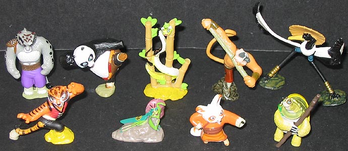 Das Bild zeigt die 9 Figuren der kommenden Kung Fu Panda Serie. Die Figuren wird es nach unseren Informationen nicht in Deutschland geben, aber sehr wahrscheinlich in Italien und anderen Ländern. [Trailer zum Film]