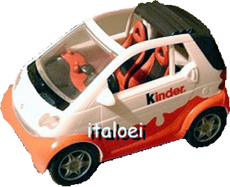 Nach dem schon zwei smarts aus dem Maxi Ei bekannt sind, kommt jetzt ein ganz besonderer dritter smart. Die smarts im "Ferrero Kinder" Design könnten glatt als Firmenwagen durchgehen ;-) Der BPZ zeigt, dass der "fortwo cabrio" ebenfalls mit einem Rückzug Motor ausgestattet ist. Alle kleinen smarts gibt es als günstigen Satz oder als Einzelstücke im Eierlei Shop. [Zum Ü-Ei Shop]