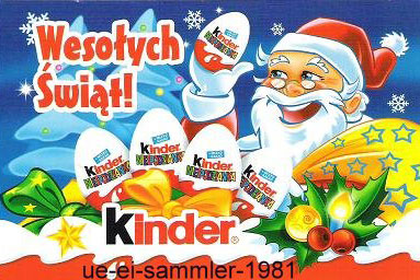 Neue Weihnachtseier als Werbeartikel in China. Es gibt zwei verschiedene Eier aus transparentem Kunststoff, eines mit Weihnachtsbaum und eines mit Weihnachtsmann. Wenn man alles zusammenbaut, kann man die mitgelieferte Flüssigkeit reingeben und die Umrandung quillt auf (hier auf dem Bild noch im Normalzustand). Sehr geckig und mal was Neues. Quelle: [Diese eBay Auktion] Test Mini Maxi Satz aus Italien. Die Eier heißen "BIG" Kinder Sorpresa. Es gibt 6 verschiedene Inhalte für Mädchen, wie hier auf dem Bild zu sehen und 6 verschiedene Inhalte (Autos, Flugzeug usw. ) für Jungen. Quelle: [Diese eBay Auktion]