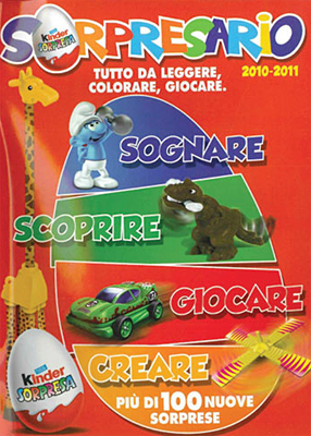 In Italien ist wieder ein SORPRESARIO Heft aufgetaucht. Das Besondere an dem Heft sind 50 geballte Seiten aktueller Überraschungseier Informationen. Es werden detailliert die Spielzeuge und Serien von 2010 bis 2011 vorgestellt. Allerdings rein auf Italien bezogen. Wegen der umfangreichen Informationen haben wir eine extra Seite auf Eierlei erstellt. Die neue Seite wird unter der Eierlei Rubrik "Ü-Ei um die Welt" verankert. Direkter Link zum neuen [Eierlei Bericht].