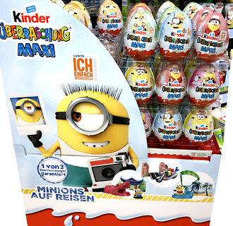 Die Umverpackung der Maxi Minons Eier zeigt jeweils eine Figur der Serie.