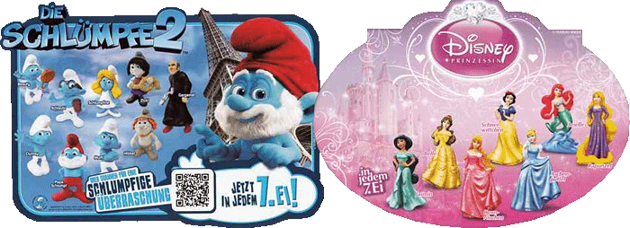Die Auslieferung von den Schlümpfen 2 und den Prinzessinnen hat begonnen. Die Bilder zeigen uns Palettenanhänger zu den beiden neuen Ü-Eier Serien. Auf jedem PAH sind alle Figuren der Serie zu sehen und namentlich benannt.