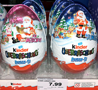 Immer mehr etabliert sich das Ferrero Riesen Ei. Auf dem Bild ist das Riesen Ei für Mädchen und Jungen zu sehen.