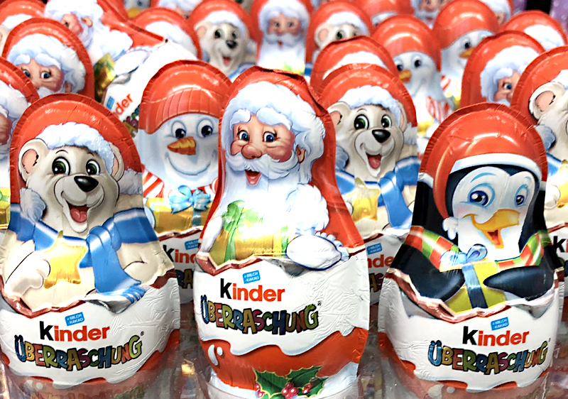 Das Motiv von diesen Überraschungseiern soll darstellen, wie die weihnachtlichen Figuren im Ü-Ei stecken. Diese Eier bestehen aus 36g Ü-Ei Schokolade, daher sind sie im Preis teuerer als normale Ü-Eier. In unseren Test Eiern war aktuelles Spielzeug.