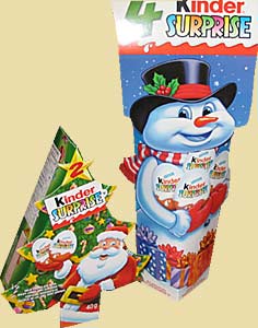 In Kanada gibt es nicht nur das schon vorgestellte 3er Pack der Disney Cars. Links zu sehen ist ein kleiner feiner Tannenbaum, der 2 Ü-Eier beinhaltet. Im Schneemann Look gib es noch ein 4er Pack. Rechts zu sehen ist eine große Weihnachtskugel, die aus 150g Schokolade besteht. Besondere Inhalte können nicht auf der Verpackung erspäht werden. Danke an Wolfgang M. In der Schweiz gibt es die Rentiere in diesem bekannten 6er Pack. Garantiert werden 2 Figuren. In Holland sind diese beiden 4er Packs zu bekommen. In dem 4er Pack sind neue S2 Spielzeuge. Quelle: ue-ei-portal. de