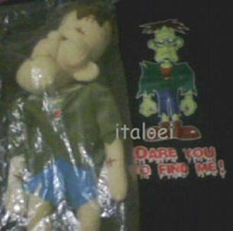 Das Bild zeigt zwei Werbeartikel aus Australien. Es ist eine Plüschfigur von Funnystein (Monsterhotel). Im Hintergrund ist ein schwarzes T-Shirt mit Funnystein zu sehen. Aus der Türkei kommt dieses 3er Pack der Piratellis. Oben rechts ist Dragox vom Monster Hotel zu sehen. Quelle: [italoei. at] Aus Italien kommt dieses Werbetuch. Hinter dem Ü-Ei sind etliche Inhalte zu sehen. In Luxemburg gibt es diesen Schoko Hasen. In dem Schoko Hasen ist eine Ü-Ei Kapsel, in der ein EU Sporty Chicks steckt. Ja komisch, aber kein vorgezogener Aprilscherz. Rechts das Bild zeigt einen Werbeanstecker der Sporty Chicks der bei den Schokohasen steckt. [Sporty Chicks im Eierlei Shop] Quelle: [eierkammer. de]