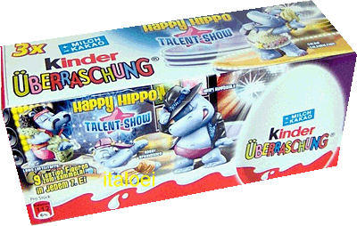 Von der Happy Hippo Talent Show gibt es diese Wackelbilder. In dem Rahmen des Wackelbildes könnten unterschiedliche Bilder eingerahmt werden. Bis jetzt sind die Wackelbilder der Talent Show nur in Russland zu bekommen. Quelle: Diese eBay Auktion In Italien gibt es jetzt die "Looney Tunes - Winter Sport". Der Satz besteht aus den 6 Figuren, die auf dem Bild zu sehen sind. Zu jeder Figur gehört ein BPZ in Hochformat. Quelle: Diese eBay Auktion In Osterreich gibt es dieses 3er Pack mit dem Sommerei. Na ja, der Name Sommerei ist nicht so passend in der winterlichen Verpackung, aber egal, lecker sind die Kinder Joy Eier zu jeder Jahreszeit.