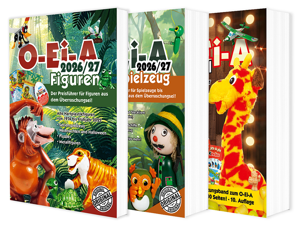 O-Ei-A Figuren 2026/27: Alle Hartplastikfiguren von 1974 bis heute, inklusive Serien-Spielzeug, Metallfiguren, Puzzles sowie saisonale Highlights wie Weihnachten & Halloween.