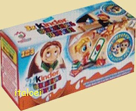 Dieses 3er Pack gibt es bald in der Schweiz. Die Figuren auf dem 3er Pack könnten vielleicht eine neue Serie zeigen. Zu Ostern gab es in Argentinien diese beiden 1er Packs. Das linke 1er Pack zeigt links am Rand eine Figur der Babyfeuerwehr. Das rechte 1er Pack zeigt ein reines Osterlayout. Ebenfalls aus Argentinien kommt dieser Ü-Ei Spender. In Brasilen gab es schon mal einen ähnlichen Spender. Quelle: [Diese eBay Auktion] In Frankreich gibt es in den Maxi Eiern Inhalte von den Pop Star Grillys. Das Bild zeigt einen Musik spielende na ja Breakedance Fläche.