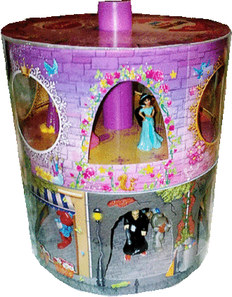 Dieses Diorama verrät, welche beiden Serien als nächstes im August kommen werden. Oben im Diorama ist eine Prinzessinnen Serie zu sehen, im unteren Teil ist der zweite Teil der Schlümpfe. Das Diorama sieht aus, als wenn es oben per Hand gedreht werden kann.
