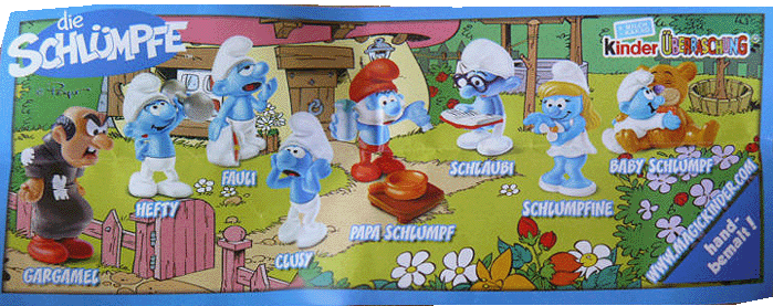 Dies ist der erste BPZ der deutschen Schlümpfe. Auf der Vorderseite sind alle 8 Figuren zu sehen und mit Namen versehen. Der Rückseite zeigt, dass es sich um den BPZ von CLUMSY handelt. Um den Charakter von CLUMYS zu beschreiben, gibt es eine Kurzgeschichte. Auslieferungsstart der Schlümpfe ist der 27. 12. 11. [Zu bekommen in dieser eBay Auktion]