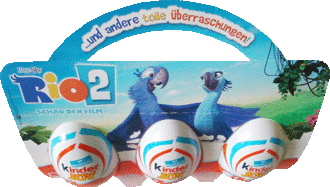 Im Tragetaschen Format gibt es dieses 3er Pack von RIO II. Auf der Verpackung ist nichts von einer Figurengarantie zu sehen, aber nach unseren Informationen soll in jedem 3er Pack eine RIO Figur sein. Das 3er Pack gibt es bei unseren österreichischen Freunden, genau wie das Thekendisplay. Sehr wahrscheinlich kommt das gleiche 3er Pack in Deutschland auf den Markt. Auf dem 3er Pack steht RIO 2 "SCHAU DEN FILM". Er läuft in Deutschland schon seit April. Hier der Link zumTailer "Rio 2 Dschungelfieber". Auf Kinderjoy. de ist heute die erste Werbung von RIO 2 gestartet, von daher kann die Auslieferung in Deutschland losgehen. Die ersten RIO 2 Figuren: [Live Suche auf eBay nach RIO 2 starten].